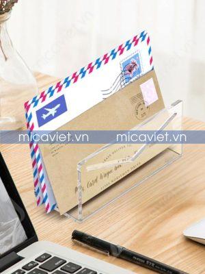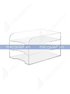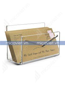 Trong văn phòng, mica được sử dụng để sản xuất các sản phẩm như bảng tên để bàn, khay đựng tài liệu, bảng thông báo và các vật dụng khác. Những sản phẩm này không chỉ mang tính thẩm mỹ cao mà còn bền bỉ và dễ dàng vệ sinh giúp không gian làm việc luôn sạch sẽ và chuyên nghiệp.